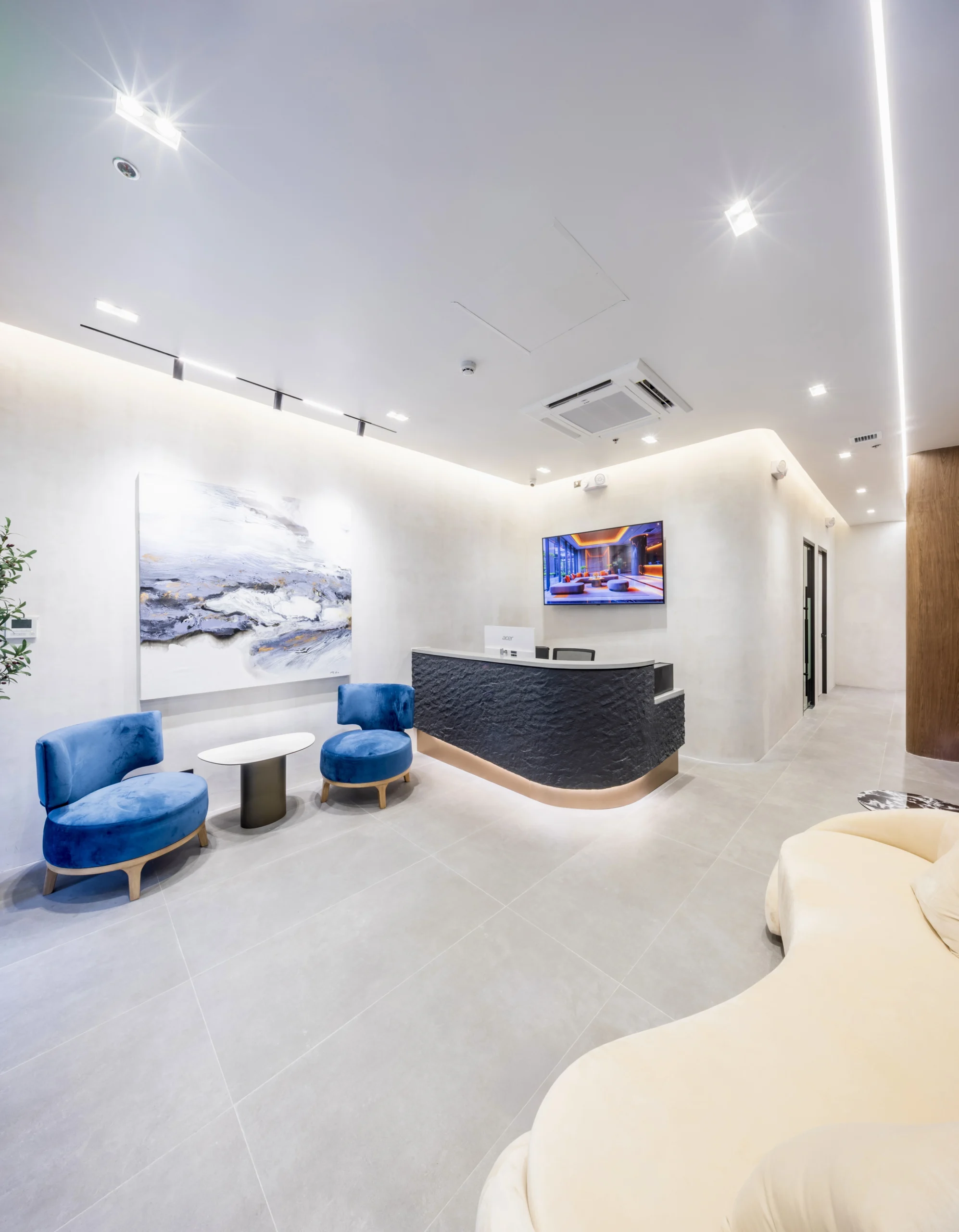 The welcoming hotel-style lounge of Affinity Dental Clinics Parañaque, offering patients a calm and comfortable environment before treatment.