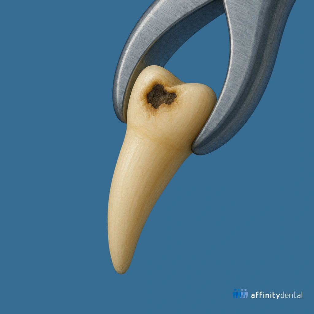At Affinity, we explore every possible option—such as root canal or restorative treatments—before recommending extraction. When removal is best, the procedure is carried out with minimal discomfort and maximum care.